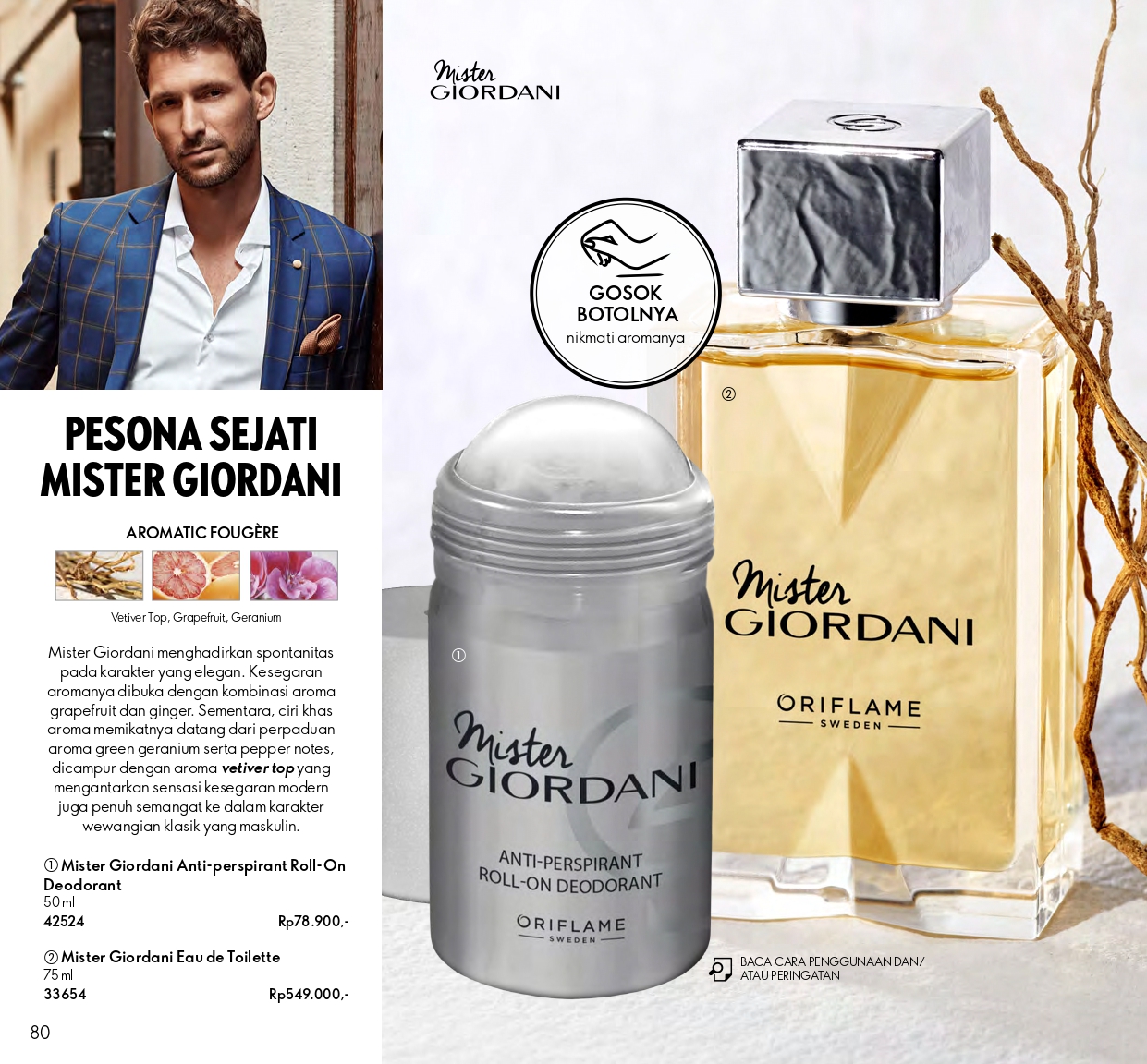 BARU GIORDANI GOLD Mister Giordani eau de Parfum, kualitas daya tahan lebih lama, desain baru yang elegan, aroma ikonik tetap sama. AROMATIC FOUGERE Grape Fruit, Geranium, dan Vetiver Top. Setiap Pria wajib punya! Normal Rp559.000,-