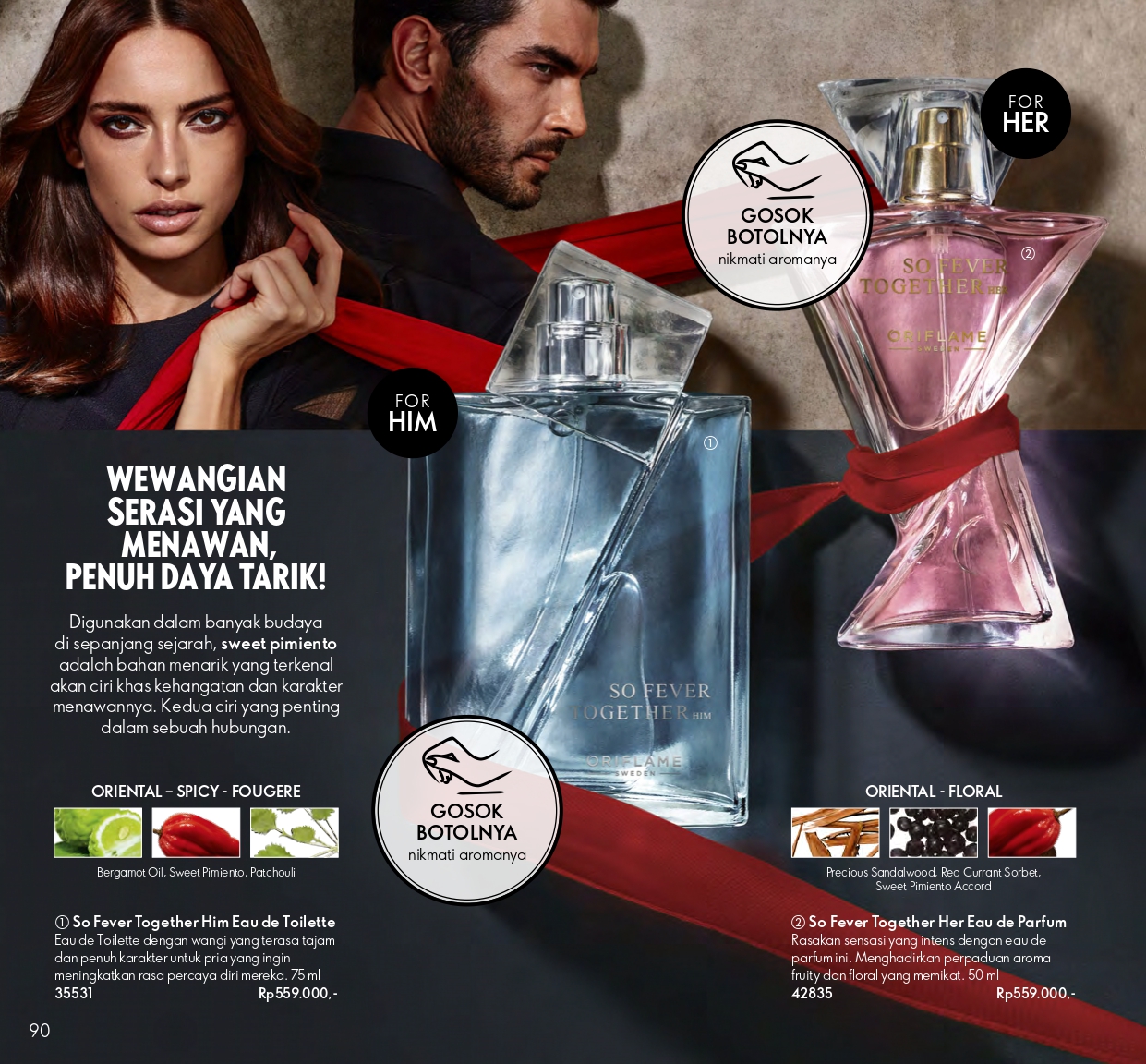 So Fever Together Him, wewangian menawan yang diracik berdasarkan aroma adiktif minyak daun sweet pimiento yang terasa begitu menggugah. Semuanya ini meninggalkan jejak yang sulit untuk dilupakan. Harga normal Rp519.000,-