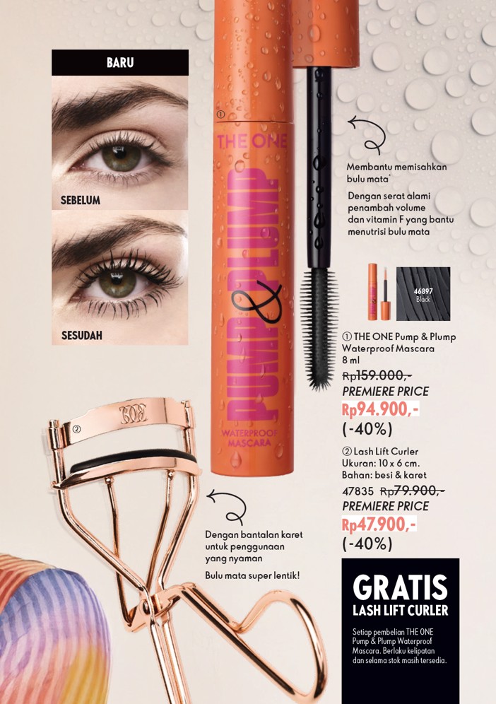 Maskara tahan air yang terbukti membuat tampilan seperti bulu mata palsu 360°. Rahasianya pada tangkai aplikator yang dapat ditekuk sesuai bentuk kelopak mata.