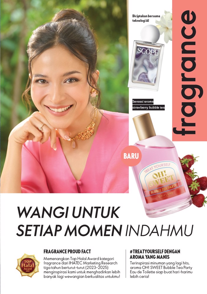 Jadilah yang pertama mencoba wewangian terbaru Oriflame Scope Earth Wonder EDT. Ambery Vanillic Musky yang ceria, segar, dan membangkitkan vibe yang positif. Bahan utama : pear sorbet, green florals, violet leaf, magnolia, musk, dan sandalwood.