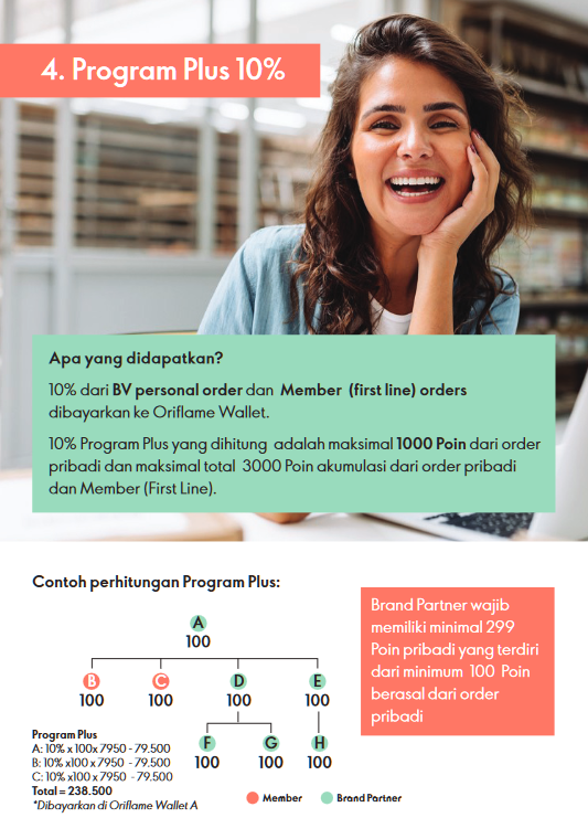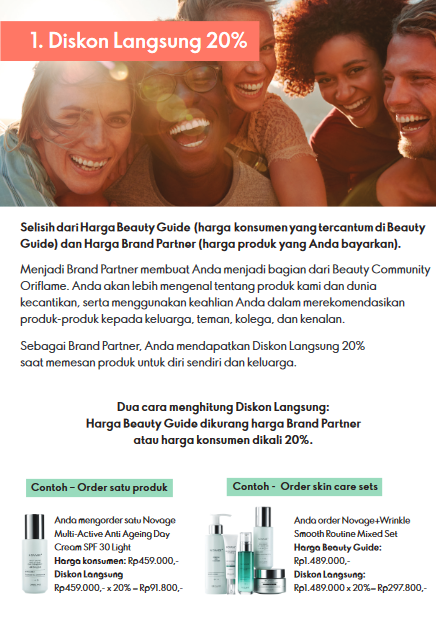 Dapatkan semua keuntungan, hadiah sebagai member atau Brand Partner Oriflame, mulai dari diskon, potongan harga, produk gratisan, peluang penghasilan bulanan, karir, dan seabrek rewards yang fantastis.
