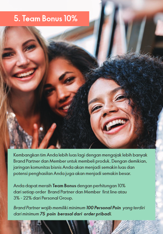 Peluang incomenya menjanjikan banget, ada keuntungan jualan yang bisa kamu dapetin setiap hari, referral bonus mingguan, dan team bonus yang akan ditransfer bulanan sebagai gaji kita loh!