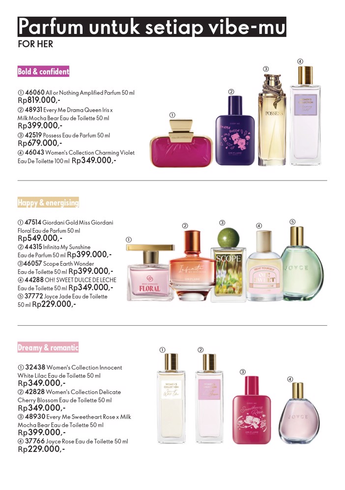 Tenang masih ada promo lagi nih, scroll terus sampai kebawah yaa! Parfum dibawah ini adalah penawaran admin dan stoknya terbatas, tidak terdapat di katalog bulan ini, jika terdapat perbedaan harga, maka yang berlaku harga sesuai di web Oriflame.id